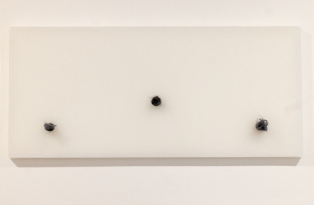 Outlets, 2026.Wood, wax, hoses, linen fibres. 30 x 65 x 2,5 cm.jpg
